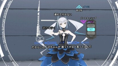 ゲームでは、人型兵器「マキア」に乗り、戦うことになります。戦闘マシンを起動、シールドを展開、キャノンを発射、という動作を組み合わせてアクションを行うわけですが、ここでプレイヤーは「キャノンを発射しない」という選択も可能です。こういった自身の行動を決める選択は、よりノベルゲーム的な「探索パート」や「アドベンチャーパート」でも同様に存在します。選択に意味があるゲーム。それが本作なのです。 加えて、基本的に主人公であるプレイヤーが激しい動きをする場面がないので、酔いにくくなっています。