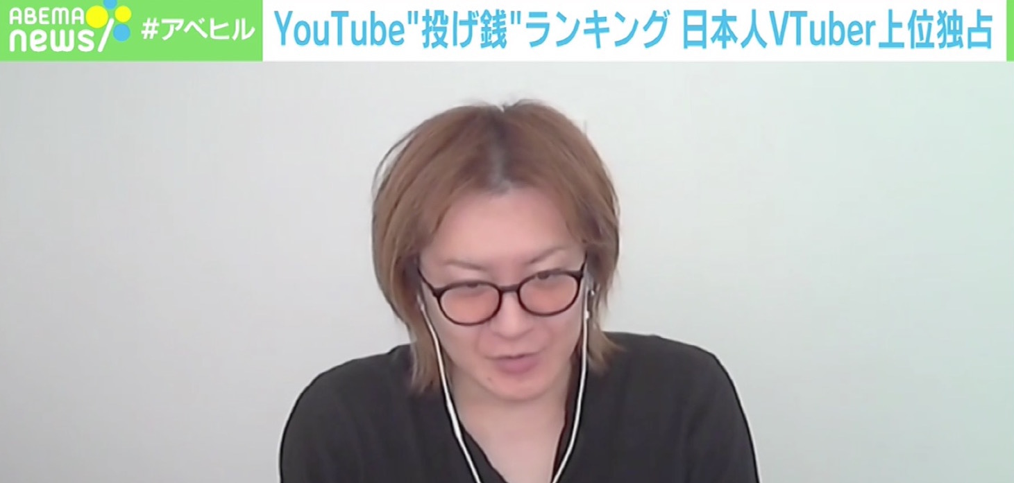 スーパーチャット(通称“スパチャ”)では、視聴者は100円から最大5万円まで好きな金額を設定し、投稿者にお金を送ることができる。ニュース番組「ABEMAヒルズ」のスタッフが取材を進めると、10万人以上がチャンネル登録をしている「朝ノ姉妹ぷろじぇくと」の運営担当者・ノリさんは「スーパーチャットによる収入の額は言えない」とした上で、収入のおよそ9割は「スーパーチャットだと思う」と回答。投げ銭は「20代から40代の男性が中心」だという。